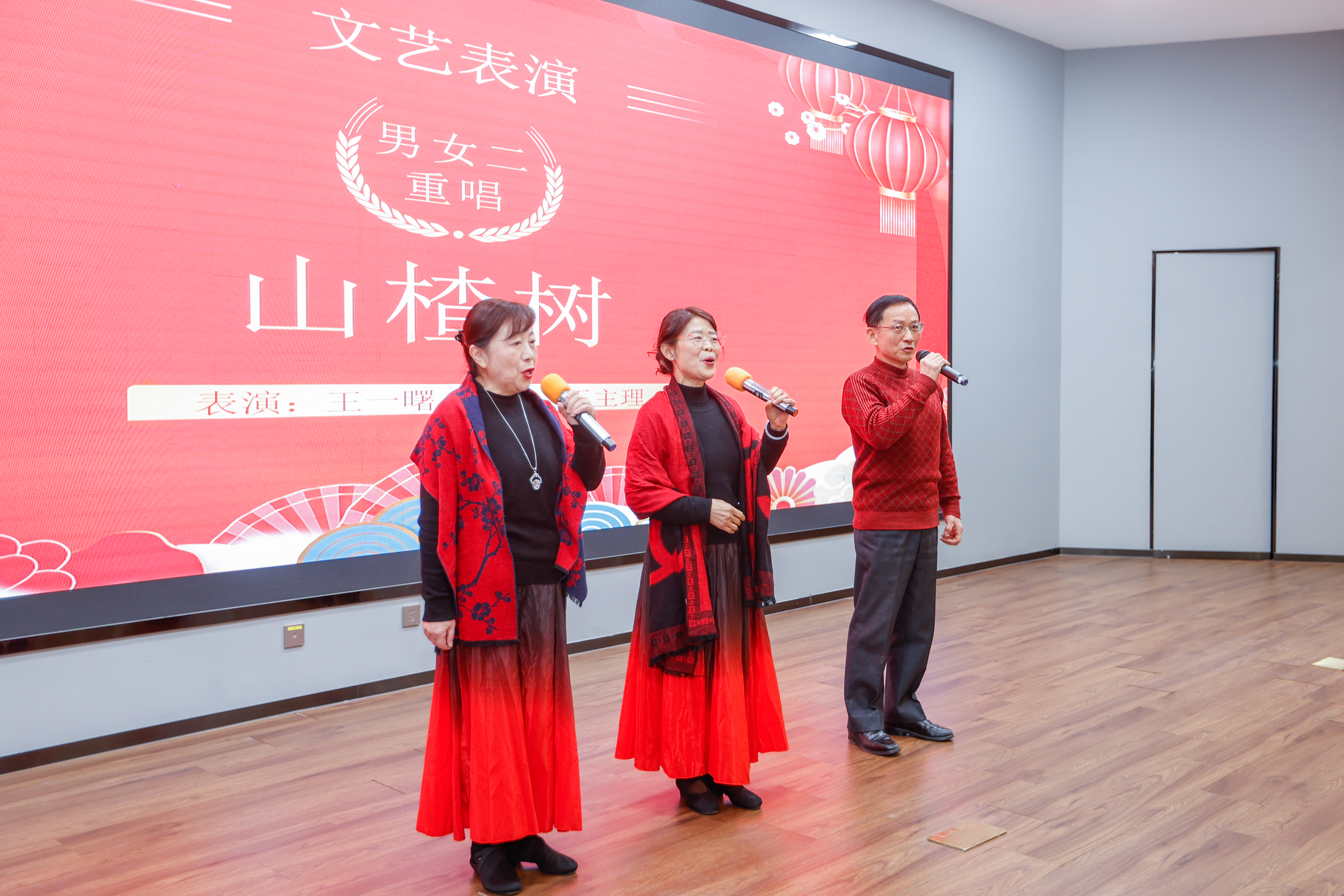 精彩纷呈的文艺表演将团拜会的气氛推向高潮。舞蹈《珊瑚颂》通过优美的舞姿和充满活力的表演,展现了退休教职工积极向上、乐观开朗的精神风貌。葫芦丝独奏《雪山姑娘》展示了退休教师的多才多艺。男女声重唱《山楂树》、木兰双扇、太极剑、杨氏太极拳24式、太极柔力球等充分展示了老同志热爱生活的良好精神面貌。