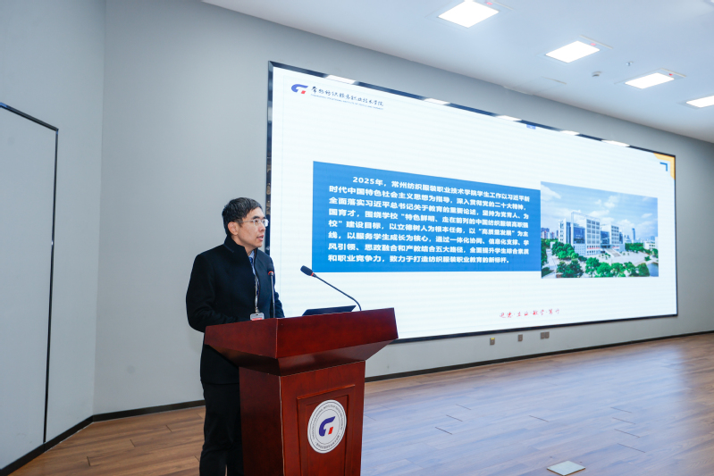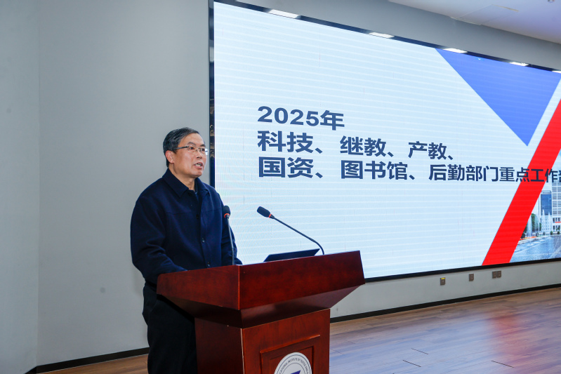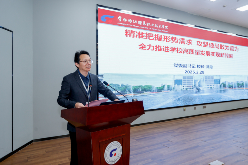 党委副书记、校长洪霄首先简要回顾和分析了2024年党政工作要点完成情况,然后洞察职教发展形势,要求大家牢牢锚定国家发展战略需求定位,积极顺应技术革命和产业变革发展态势,深度聚焦职业教育自身发展要求。最后他从三个方面对学校2025年工作做部署:一是聚焦一个核心目标,就是要把坚持立德树人根本任务,培养德智体美劳全面发展的高技能人才作为我们的核心目标。二是打好三大攻坚战役,做到三个“聚焦”:聚焦申本创大目标,汇聚全员奋进“新力量”;聚焦产教深度融合,探索协同育人“新路径”;聚焦关键要素改革,重塑创新发展“新生态”。三是落实五大重要任务,分别是数字转型赋新能,激活教育教学“智慧脑”;科技创新强驱动,开启成果转化“快通道”;社会服务树品牌,拓宽服务社会“辐射面”;开放办学扩影响,搭建国际交流“连心桥”;治理效能提质效,筑牢稳健发展“压舱石”。