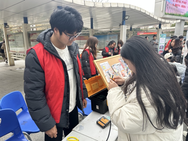 多元体验,凝聚校园暖流。3月5日,在创美广场举办的“志愿服务集市”吸引了全校师生参与,集市融合了技能服务与创意公益,设立了十个互动展位,让参与者在“逛集市、做公益、赢积分”的过程中,享受沉浸式体验。各志愿服务队纷纷亮出特色服务:纺小团志愿服务队推出的“团团活力焕新颜”、心青年志愿服务队的“雷锋存折”、向阳花志愿服务队的“染整助力生活、志愿传递温暖”、领秀志愿服务队的“领秀裁缝铺”、彩虹志愿服务队的“旧物焕新,绿植义卖公益行”、蓝领巾志愿服务队的“晶心连接 智愿同行”以及菁果志愿服务队的“校园健康知识科普”等活动,吸引了超过200名师生积极参与。