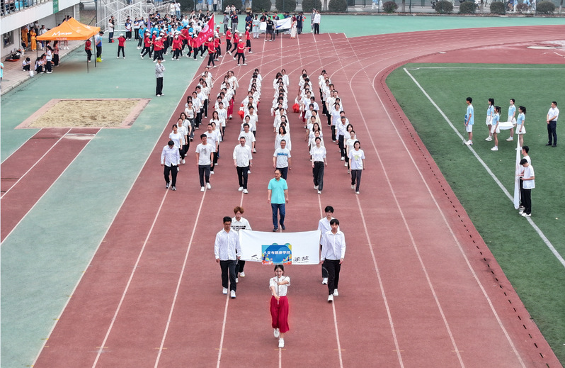开幕式上,各代表队踏着《运动员进行曲》依次入场,身着彩妆展示出各具特色的专业风采,给观众留下了惊艳印象。党委副书记、校长洪霄致开幕辞,并宣布运动会开幕。他提出,学校体育是培养全面发展人才的重要途径,我校高度重视体育工作,积极推进体育教学改革,不断完善体育设施,广泛开展丰富多彩的体育活动,在提高学生身体素质、培养团队精神和竞争意识等方面取得显著成效。学校运动会的举办是对我校体育教学成果和师生精神风貌的全面检阅,也是师生展示自我、挑战自我、超越自我的重要平台,是推动学校高水平建设和高质量发展的内生动力!