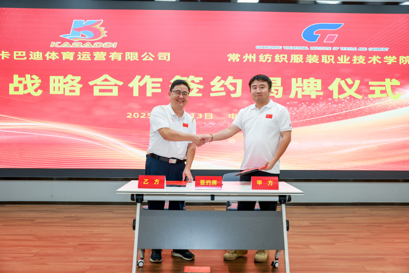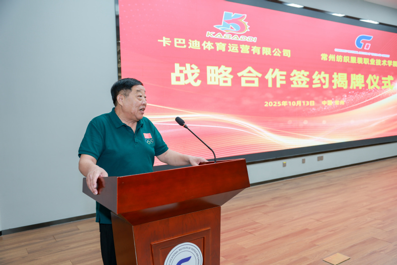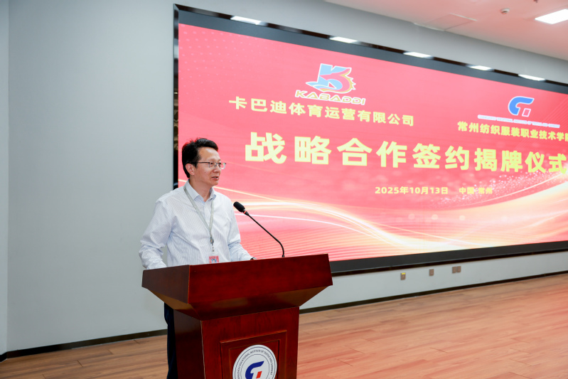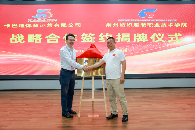 10月13日下午,卡巴迪体育运营(黑龙江)有限公司与常州纺织服装职业技术学院(简称“常州纺院”)战略合作签约暨“全国卡巴迪运动推广委员会华东办事处”揭牌仪式,在常州纺院校务中心一楼领秀展厅成功举行。江苏省体育局社会体育管理中心主任刘森、常州市体育局群体处处长陈炜、全国卡巴迪运动推广委员会秘书长王玉斌,及常州纺院党委副书记、校长洪霄等领导嘉宾出席仪式,共同见证这一体教融合领域的重要合作时刻。