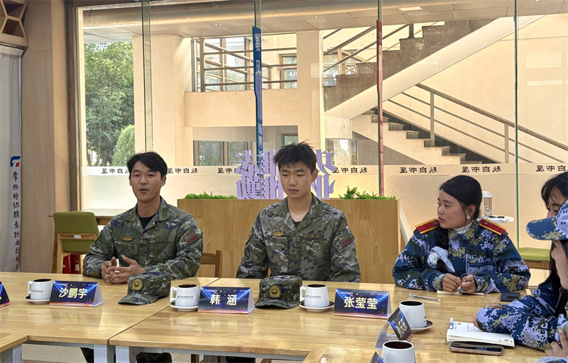 交流中,学生代表们结合自身经历,分享了军训带来的蜕变与思考,言语间满是收获与感悟。