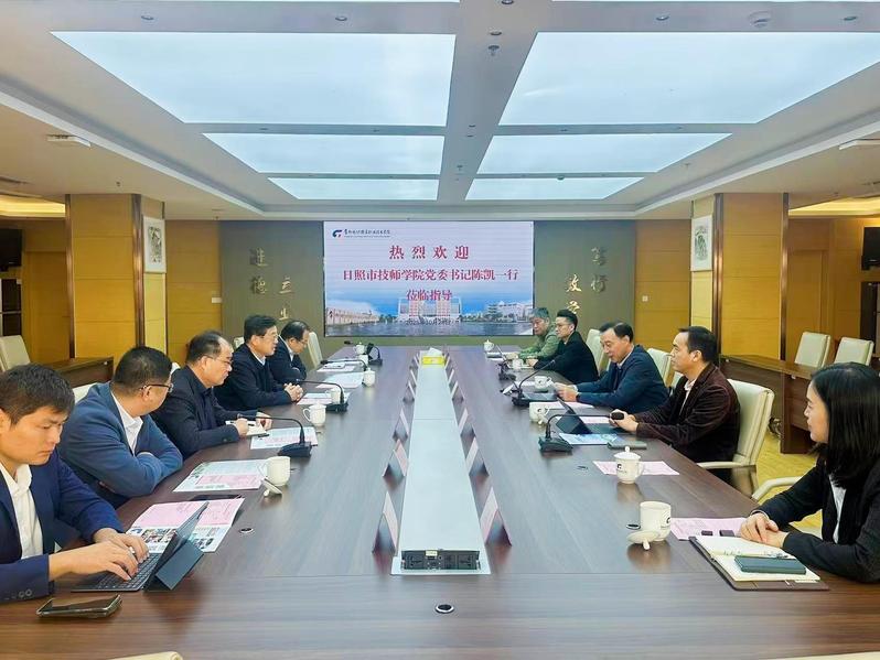 10月28日,日照市技师学院党委书记陈凯、副院长陈为军,培训处处长焦爱国,中国联通日照市分公司副总经理、党委委员周艳兵等一行7人来我校调研交流。中国联通常州市分公司副总经理、党委委员盛君携团队出席交流。我校党委书记林刚、党委委员副校长马昀、信息中心主任廖定安、副主任薛鹏飞参加会议。