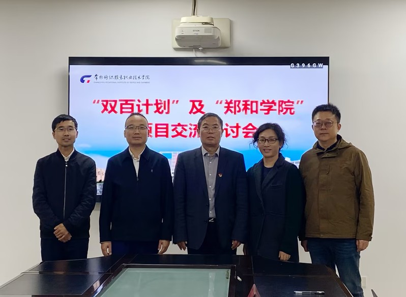 11月11日,我校召开“双百计划”及“郑和学院”项目交流研讨会。“一带一路”职业教育产教联合体副秘书长李剑一行参加交流研讨会,我校党委委员、副院长张文明、外事办主任何彦、外事办副主任韩瑞、智能纺织与材料学院副院长裴浩等参会。