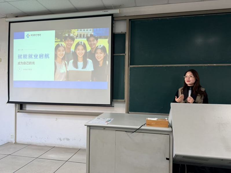 11月20日,数字商贸学院一站式学生社区携手生·长思政工作室在4A401教室成功举办了“大学生就业准备—成为自己的光”主题讲座。生·长思政工作室负责人冯益芙、学生工作党支部书记蒋文贤、常亮数字集团党支部书记王慧、辅导员钱锦和150余名同学参加了本次讲座。