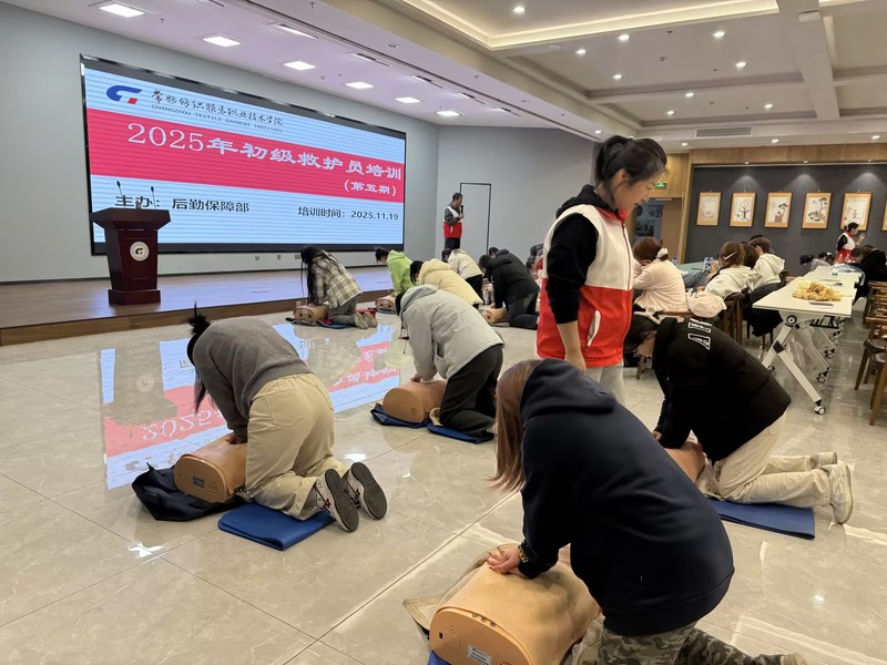 为进一步发挥班团骨干在校园安全建设中的先锋示范与引领作用,筑牢校园应急救护的第一道防线,11月12日和11月19日下午,我校后勤保障部联合常州市红十字会,分别在领秀展厅和图文报告厅开展初级救护员培训,培训分别由我校卫生健康中心副主任侯艳洪和常州市红十字会急救师资吴建荣主讲。校医护人员与红十字会师资团队辅助进行分组实操指导,智能制造学院和人文学院的204名班团干部作为核心参训群体,以“学技能、强担当”的积极态度完成了系统培训,为构建平安校园注入青春力量。