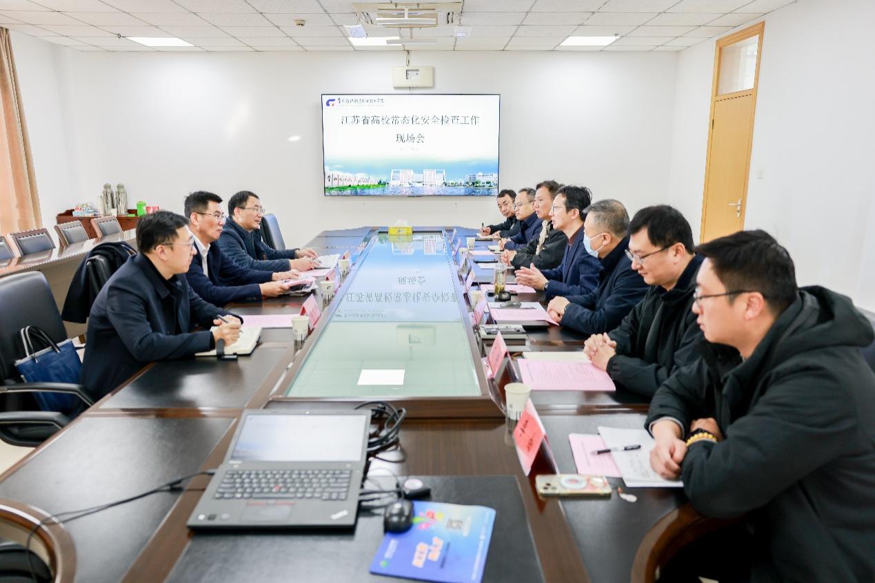 11月26日上午,江苏省高校常态化安全检查组第八组在南京大学保卫处处长姜辉的带领下,一行三人莅临我校,开展学校安全检查工作。检查现场汇报会在我校校务中心1730会议室举行。学校党委副书记、院长洪霄,保卫处处长罗卫东,教务处副处长于俊,后勤保障部副部长文博及保卫处相关人员出席会议。会议由党委委员、宣传部部长夏斌主持。