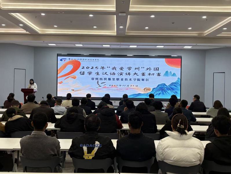 为了搭建外国留学生汉语交流平台,增进其对常州的文化认同与情感联结,11月26日下午,2025年“我爱常州”外国留学生汉语演讲大赛初赛在我校举行。常州市政府外事办公室四级调研员、涉外管理处处长张国俊,常州市政府外事办公室三级主任科员张文娟到会观摩指导。我校党委委员、副院长张文明出席活动并致辞。