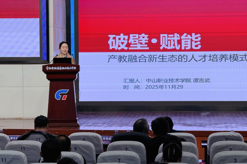 随后,会议进入主题报告环节,由共同体秘书长顾明智主持。力贝(广州)数字创意科技股份有限公司总经理呼野以“IP潮流+AIGC赋能非遗文创产教融合”为题,探讨了科技与文化融合的创新路径;中山职业技术学院艺术设计学院院长谭吉武教授则围绕“破壁·赋能:产教融合新生态的人才培养模式创新实践”,分享了院校在育人机制方面的探索与成效。