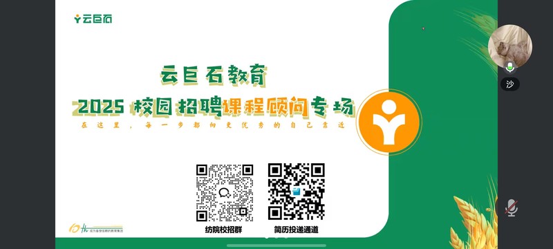 为拓宽毕业生就业渠道、对接企业人才需求,12月4日下午,人文与健康学院组织企业空中宣讲会,邀请江苏云巨石科技有限公司、常州天之远教育科技有限公司代表推介岗位,2025届毕业生和2026届毕业生在线参与。