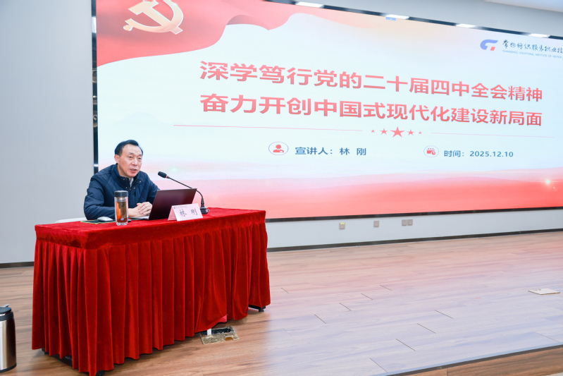 为深入学习宣传贯彻党的二十届四中全会精神,进一步凝聚共识、明确方向,切实把思想和行动统一到党中央决策部署上来,汇聚形成建设中国纺织服装高职强校的强大动力,12月10日下午,学校党委书记林刚在领秀展厅为人文与健康学院、服装与时尚设计学院全体教师作党的二十届四中全会精神宣讲报告。宣讲报告会由服装与时尚设计学院党总支书记王磊主持。