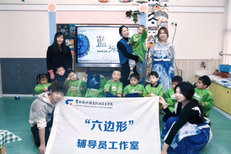 12月10日,“六边形”辅导员工作室联合学校“一站式”学生社区,赴新北区翰林智群幼儿园开展非遗蓝染体验活动。此次活动由“六边形”辅导员工作室负责人应吉带队,学校织韵染艺社成员与十余名幼儿共同参与,旨在通过沉浸式手工实践,让幼儿近距离感受传统非遗技艺的魅力。