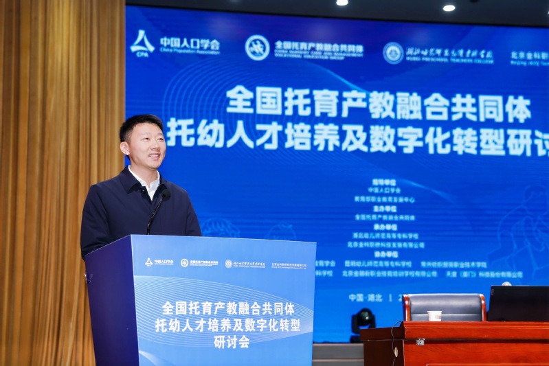 12月6日,以“融合・赋能・创新”为主题的2025年全国托育产教融合共同体托幼人才培养及数字化转型研讨会在湖北幼儿师范高等专科学校顺利举行。本次会议由中国人口学会、教育部职业教育发展中心指导,全国托育产教融合共同体主办,湖北幼儿师范高等专科学校与北京金科职桥科技发展有限公司联合承办,是对教育数字化与人工智能战略的积极响应与实践探索。人文与健康学院院长陈辉作为全国托育产教融合共同体秘书长受邀出席研讨会。