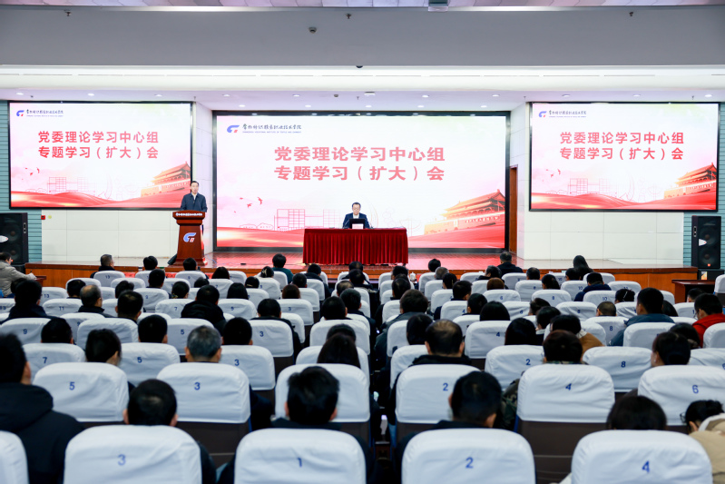 为深入学习贯彻党的二十届四中全会精神,12月24日,我校召开党委理论学习中心组学习(扩大)会,邀请中国纺织工业联合会副会长李陵申来校作纺织行业发展专题报告。党委书记林刚主持会议,学校党委理论学习中心组成员、全体中层干部、全校专业带头人、教研室主任,相关二级学院教师参加学习会。