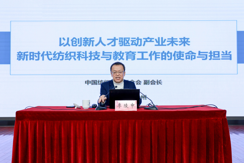 李陵申以《以创新人才驱动产业未来--新时代纺织科技与教育工作的使命与担当》为题,从新时代纺织产业愿景与人才需求变革、纺织教育与科技创新的现状挑战机遇、教育对科技与人才发展的战略性作用、以教育高质量发展筑牢良性循环根基、“十五五”全面高效的战略规划引领五个层面对教育、科技如何支撑新时代纺织产业高质量发展进行了全面阐述。他强调纺织产业是创新驱动的科技产业、文化引领的时尚产业、责任导向的绿色产业、以人为本的健康产业。报告不仅深刻分析了当前产业发展的宏观形势与人才需求的变革趋势,更系统梳理了教育与科技协同发展的现状、挑战与机遇,提出了纺织行业“十五五”期间的战略规划与实施路径建议。
