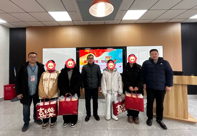 最后,潘荷新和与会领导为同学们送上暖冬慰问品,每一份礼物都承载着学院对学子们的殷切期许。此次座谈会既是年终慰问的暖心举措,也是学院资助工作的阶段性总结。