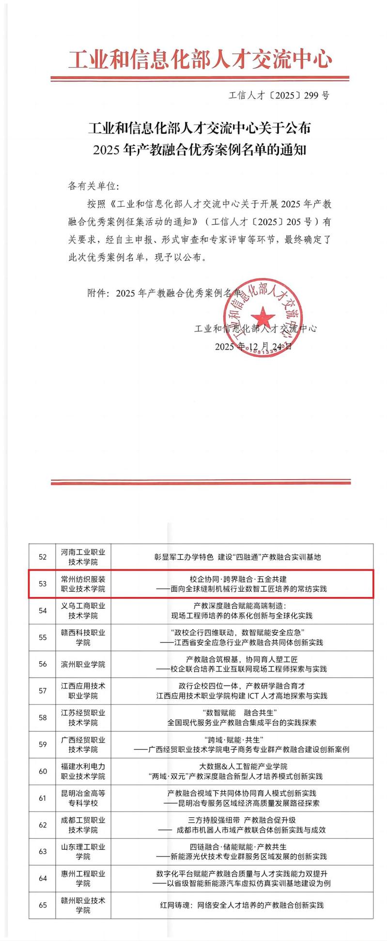 工业和信息化部人才交流中心关于公布2025年产教融合优秀案例名单的通知