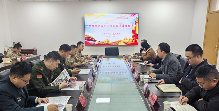 12月31日上午,常州军分区副司令柳进、战备建设处处长李兆鹏,常州市新北区人武部政委赵晓川等一行莅临我校,专题调研征兵与国防教育工作,各二级学院党总支副书记及相关负责人参加座谈,会议由学生工作处处长、人民武装部部长凌琳主持。
