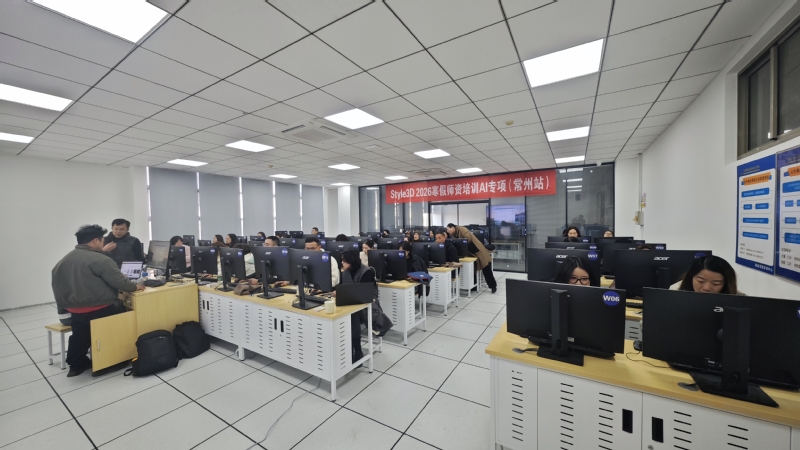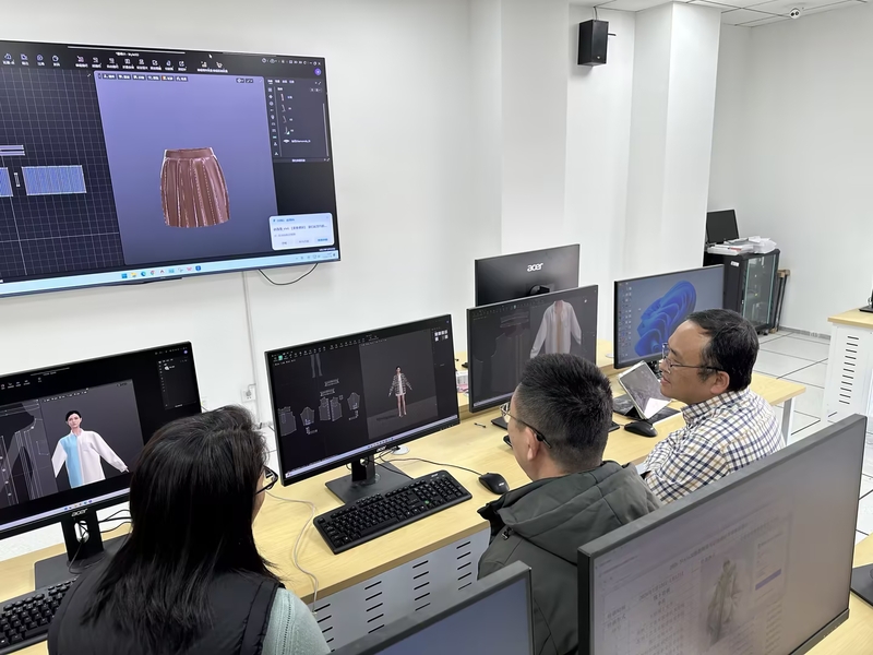 本次培训分为两个阶段。第一阶段为博克CAD智能化制版实操培训(1月5-9日),该培训以智能化、参数化打版、推版和排料为核心,服装设计、服装工程教研室老师和时尚工程师班学员在企业讲师的指导下,从软件基础操作逐步过渡到复杂款式的数字化版型开发、自动推档与排料优化等实战模块。通过贴近企业实际需求的实训任务,教师们不仅掌握了软件操作技能,也深入理解了数字化流程如何显著提升版型设计的精准度与效率。同时,大家还围绕CAD数据与工艺课程衔接、教学案例库建设等议题开展研讨。第二阶段为Style3D虚拟设计与AI专项培训(1月13-17日),该培训聚焦Style3D虚拟试衣软件及其AI应用,涵盖AI智能创意设计、三维建模、数字面料仿真、虚拟试衣调整与场景渲染等内容。教师们通过从二维版片到三维成衣的全流程实践,亲身体验了AI技术在缩短设计周期、降低打样成本、增强设计表现力方面的显著优势,培训过程中也引发了教师对设计思维转型、课程体系重构及跨课程项目设计的深度思考。