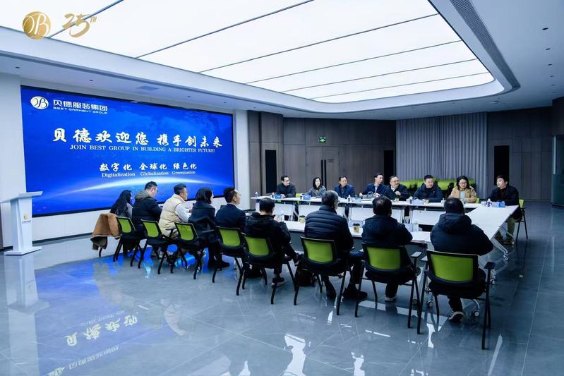 下午,调研团队先后参观了贝德集团总部党建文化馆、企业“AI驾驶舱”、面料图书馆、企业产品展厅等。座谈交流中,贝德集团董事长蒋忠伟及相关负责人详细介绍了企业在数字化、全球化、绿色化发展战略中关键环节的岗位设置与核心能力要求,以及集团海外工厂的定位、运营情况、发展规模、业务领域、人才需求、未来发展规划,为学校优化人才培养方案提供了精准方向。林刚从初心如磐、特色鲜明、勇于担当、人才辈出、充满未来五个方面介绍了学校发展情况,马昀就海外培训基地、实践基地建设及留学生联合培养等项目落地提出了具体意见。双方以寻求资源互补、协同发展为切入点,聚焦进一步拓展产教融合路径,商讨了校内人才培养、留学生联合培养及员工定制化技能培训等深度合作事宜,为学校服务“一带一路”建设和国际化办学打下了基础。