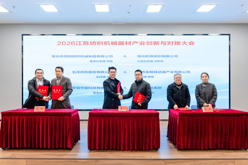 大会期间,无锡宏源机电科技股份有限公司等8家单位发布了创新技术和产品成果,展示了在智能制造、节能降耗、数字化改造等方面的最新进展。常州耀春格瑞纺织品有限公司、江苏科旭纺织科技有限公司发布了设备更新和技术合作需求,促进供需精准对接。常州市同和纺织机械制造有限公司等12家企业签署了合作意向,涵盖装备制造、技术服务、金融支持等多个领域,进一步推动了产业链上下游协同发展。