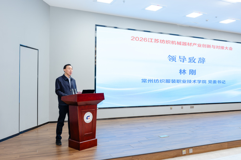 2026年2月8日,“智造未来链动江苏”—2026江苏纺织机械器材产业创新与对接大会在我校成功举办。本次会议由江苏省工信厅指导,省纺织工业协会和省纺织工程学会联合主办,常州纺织服装职业技术学院等单位承办。来自全省纺织产业链企业以及金融机构代表共百余人参会。江苏省纺织工程学会理事长周洪溶、江苏省纺织工业协会副会长张发松、江苏省工信厅消费品工业处处长刘华,我校党委书记林刚,党委副书记、院长洪霄,党委委员、副院长张文明等领导参加活动。大会以推动纺织机械器材产业链协同创新和高质量发展为目标,汇聚政府部门、行业协会、科研院所、金融机构及产业链上下游重点企业代表,共商产业发展新路径。