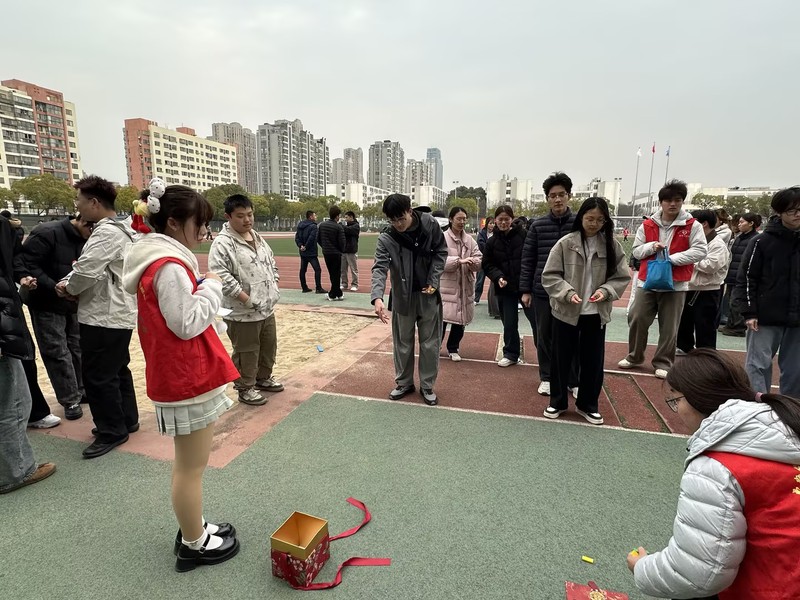 本次运动会打破传统运动局限,将竞技性与趣味性深度融合,精心设置“同舟共济”与“活力投射”两大特色赛项。同舟共济区域,同学们两两分组夹球前行,默契配合、奋勇争先,在侧身迈步中完成速度与协作的考验,现场不时响起阵阵欢笑与加油声;活力投射区域则充满了紧张与期待,同学们凝心聚力、精准投掷,每一次成功投中都引来现场喝彩,大家在比拼中感受运动乐趣,在互动中拉近彼此距离。活动现场秩序井然,赛项同步推进,同学们在轻松愉悦的氛围中加强交流、增进友谊,充分展现了团结拼搏、凝心聚力的青春风采。
