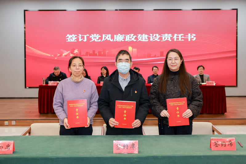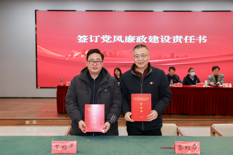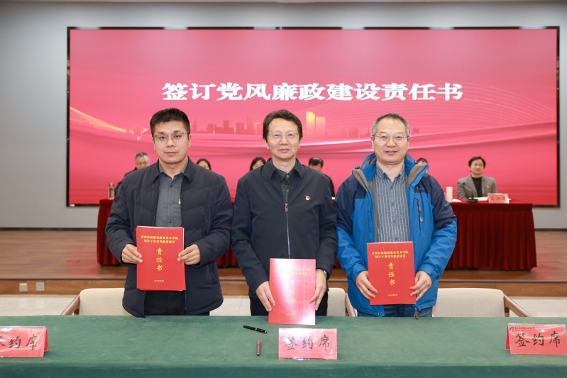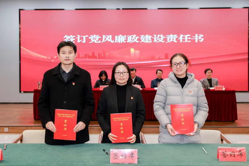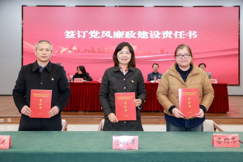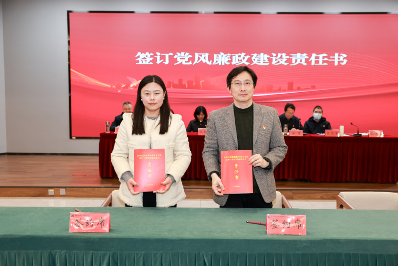 会上,智能制造学院党总支书记肖海慧、体育部直属党支部书记孙开宏分别作了交流发言,分享了二级党组织在推进党风廉政建设和全面从严治党工作中的经验做法以及不足之处。学校党委班子成员依次与联系学院(部)、分管部门代表签订《2026年领导干部党风廉政建设责任书》。全体参会人员一起观看了警示教育片。
