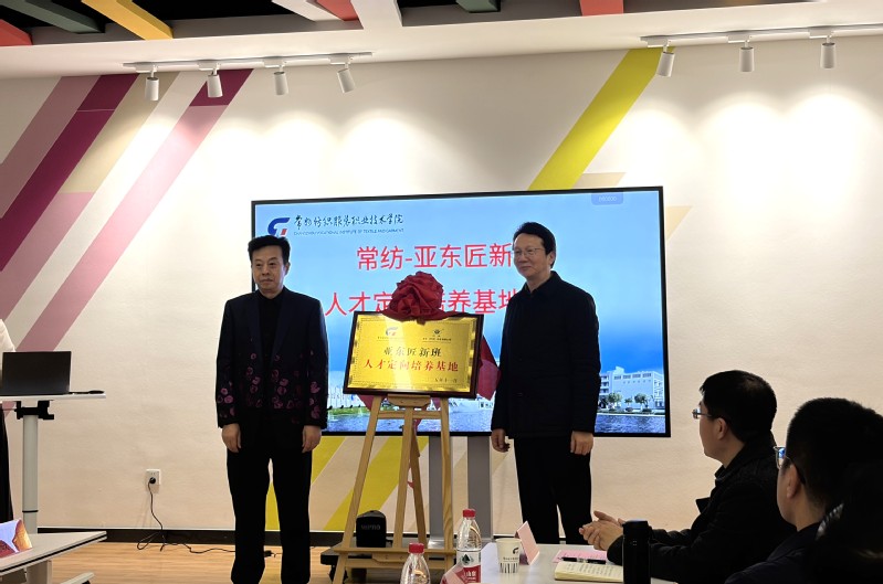2026年3月17日下午,常州纺织服装职业技术学院与亚东(常州)科技有限公司联合主办的“常纺-亚东匠新班定制化人才培养研讨会”在纺织科技文化馆隆重召开。校企双方领导、企业导师及师生代表齐聚一堂,共商产教融合育人新路径,共同见证校企合作重要成果。