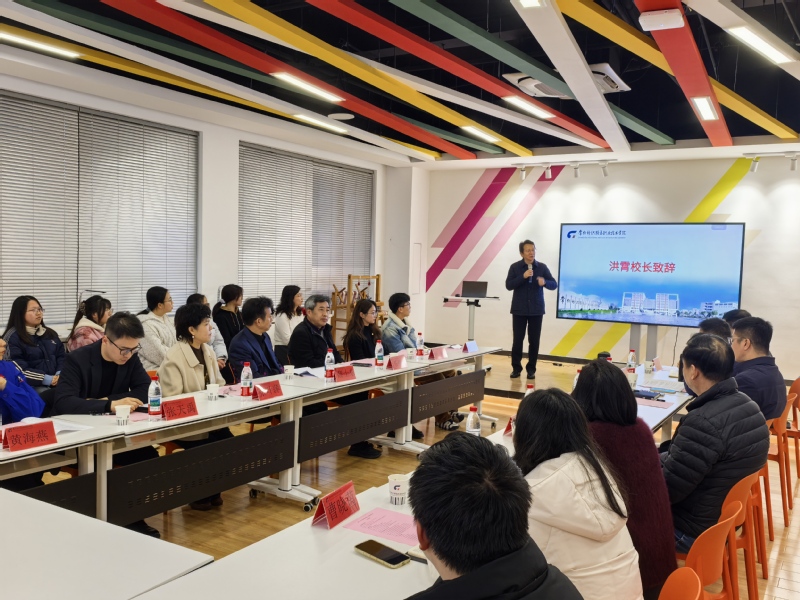 亚东集团董事长薛士东、总经理乐德忠、副总经理张叶萍、副总经理兼设计中心总监张天禹、总经办主任顾婧、黄海燕劳模工作室负责人黄海燕,常州纺织服装职业技术学院党委副书记、院长洪霄,产教处、智能纺织与材料学院相关负责同志,数字化染整技术专业教研室全体教师及“亚东匠新班”全体学生共同参会。会议由数字化染整技术专业教研室主任严英文主持,在校企双方精心制作的两段微视频中拉开序幕。短片完整记录了“亚东匠新班”从合作洽谈到方案共研、从学生选拔到企业实践的全流程,凝聚着校企在定制化人才培养项目中投入的心血与智慧。