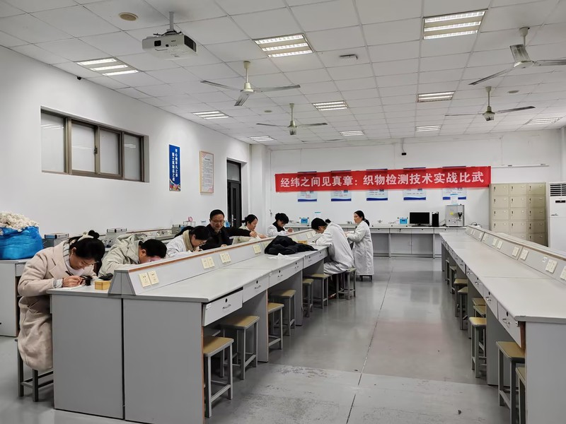 比赛共设织物性能检测、化学分析、纺织品设计三个赛项,特邀行业企业专家担任裁判,于13:00正式开始。织物性能检测赛场上,教师们运用显微镜、密度镜等仪器精准分析织物结构与成分;化学分析赛场上,选手们规范完成标准溶液的配制与标定,从称量到滴定步步严谨;纺织品设计赛场上,教师们借助数字化软件进行创意设计,充分展现专业技能与创新思维。整个比赛过程紧张有序,专家们从操作规范、数据准确性、创新性等维度进行综合评分,对参赛教师展现出的扎实专业功底和良好职业素养给予高度评价。
