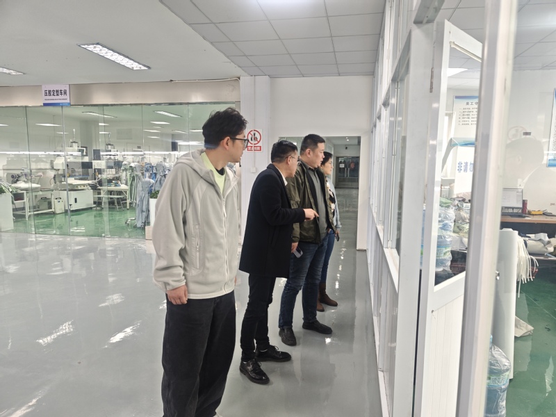 在常州奕洋服饰科技有限公司,王磊一行在丁亚斌董事长的陪同下,实地参观了企业的智能化生产线与先进的产品研发实验室,并详细了解了公司在服装智能制造、数字化设计开发、新材料应用等方面的创新成果,切身感受了传统服装产业向科技、绿色、智能化转型的强劲趋势。