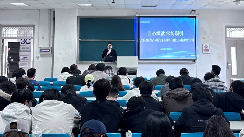 宣讲会伊始,智能制造学院就业负责老师代表学院对宁波杭州湾吉利汽车部件有限公司给予学校人才培养与就业工作的支持表示感谢。同时希望同学们珍惜此次交流机会,深入了解行业前沿动态与企业岗位需求,明确职业发展方向。