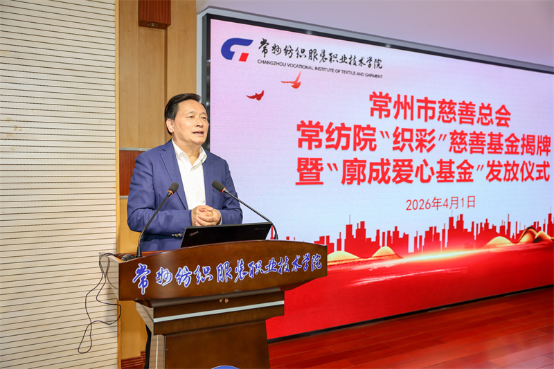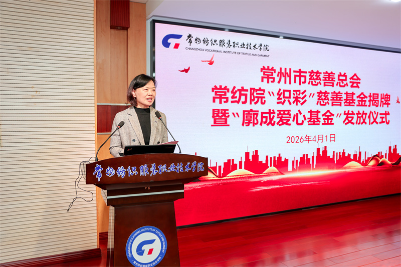 张雪华在致辞中对常州市慈善总会、廓成爱心基金及爱心企业的无私奉献致以崇高敬意,她介绍了学校“解困—育人—成才—回馈”的资助工作理念。她指出,常纺院“织彩”慈善基金的设立是慈善与教育的深度融合,也是学校落实立德树人根本任务、助力学子成长的重要举措。