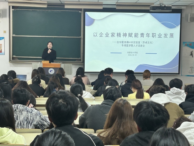 为深入推进产教融合,拓宽学生高质量就业与实习渠道,引导青年学子投身创意设计领域前沿实践,近日,创意设计学院特邀全球星浪潮AIGC实验室(乔卓文化)举办专场宣讲暨人才选拔会,活动以“以企业家精神赋能青年职业发展”为主题。学院党总支副书记柯赟洁、相关辅导员及2024级、2025级影视、动画、数字媒体等专业学生共同参会。