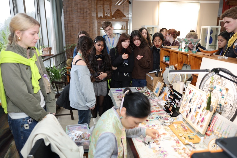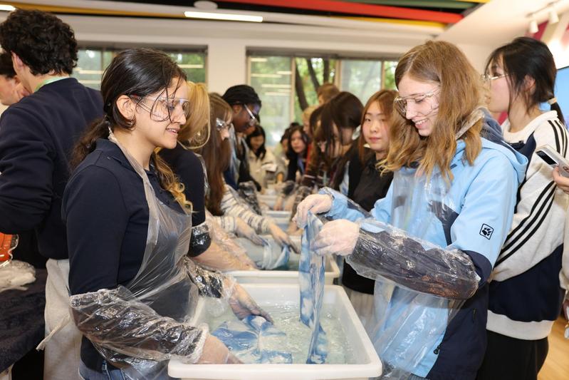 活动期间,德国师生团先后参观了学校文化传承中心、纤维艺术工作室、当代绘画工作室、服饰品设计工作室、徐氏枫艺竹刻博物馆、软装产品工作室、中法陈设设计工作室、梳篦大师工作室、纺织文化科技馆等场馆,近距离观摩纺织非遗作品、传统纺织制作工具,了解江苏纺织文化发展脉络,感受现代纺织行业的技术革新与未来发展趋势,直观认识我校纺织专业特色与人才培养成果,了解江苏纺织文化发展脉络。扎染体验环节,专业教师现场演示,德国师生分组实践,沉浸式感受中国传统技艺魅力;在电商直播实训中心,师生们走进中国电商直播场景,参与互动直播游戏,深化彼此交流。