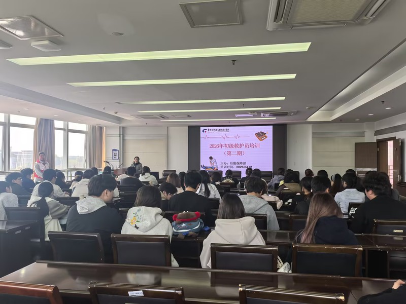全面提升师生应急救护素养和自救互救能力,筑牢平安校园建设防线,4月1日下午,2026年第二期初级救护员培训在我校7401教室及一楼大厅顺利开展,本次培训由后勤保障部组织,数字商贸学院75名师生参与学习。