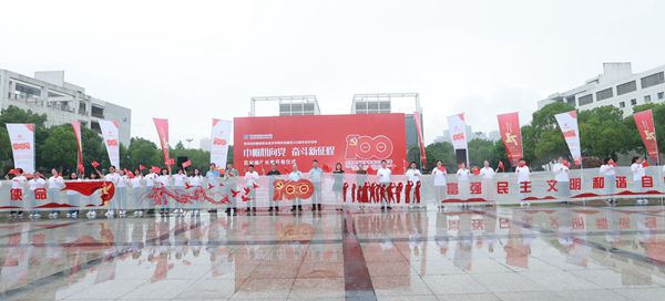 6月27日上午,我校举行了庆祝建党100周年系列活动之“巾帼心向党•奋斗新征程”百米编织长卷开卷仪式。党委书记吴访升,党委委员、副院长邓凯、赵玲珍、张震宇,我校校友、常州威登纺织有限公司经理叶栋梁,以及相关部门、二级学院领导、师生代表等冒雨参加,仪式由张震宇主持。赵玲珍首先带领在场师生回顾了“百米长卷”活动。这既是常纺院师生用特殊的方式向党的百年生日献礼,也是以百米长卷编织启迪师生赓续红色血脉,奋进新征程,追梦新时代。她指出,编织长卷的动议有多方面的因素。学校党委书记吴访升首先提议并亲自指导作品的构思。学校妇联、女知联、工会在三八节活动策划中首先发起,并得到多部门的协同配合。她从编织百米长卷的目的、作品的设计、活动的组织、展现的“常纺精神”四个方面表达了参与活动的感受。她认为,编织百米长卷的目的体现了“三种情怀”。一是师生爱党爱国的情怀;二是培养工匠精神;三是校企合作育人。百米长卷作品的设计融入了“红色元素”。作品以“红船精神”、“西柏坡精神”、“航天精神”、“社会主义核心价值观”、“中国梦”等为重点,图文结合,展现党的百年辉煌历程和功绩,体现“四史”学习教育内容。百米长卷活动的组织体