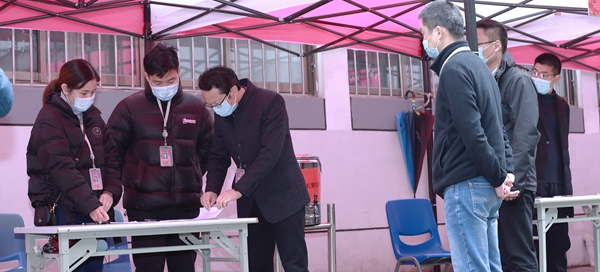 为做好学生返校前各项准备工作,落实防疫常态化,3月2日上午,洪霄院长带队开展巡查调研,赵玲珍副院长、党政办、学工处及后勤保障部相关人员随行。洪霄一行察看了保健站工作情况、防疫物资储备情况,深入了解已到校学生生活情况,重点调研核酸检测取样现场布置准备工作。洪霄要求各部门要高度重视疫情防控和安全防范工作,通力协作,从严从细做好新学期学生返校各项准备,确保学生返校工作平稳有序和校园安全稳定。图/文:潘璐 审核:管俊洛