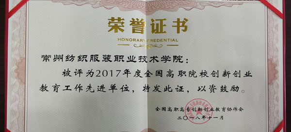 我校荣获“全国高职高专创新创业教育工作先进单位”荣誉称号
