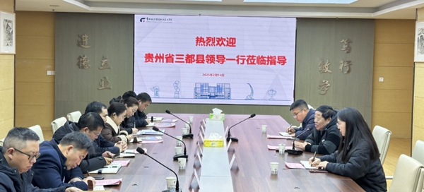 2月14日,贵州省三都县人大常委会副主任潘和厅、贵州省三都县政协副主席谢朝栋等一行11人来我校调研交流。常州市纺织工程学会理事长张国成、招生就业处处长高妍、智能纺织与材料学院党总支书记侯喜军热情接待并座谈交流。会议由高妍主持。会上,张国成对三都县考察团表示热烈欢迎,并详细介绍了常州纺织工业的历史积淀、发展现状及我校办学特色,表示贵州省的植物染色、中草药、非遗文化等与我校有着广阔的合作空间。高妍围绕学校办学规模、特色专业布局及招生培养计划作专题汇报,她重点介绍了我校在贵州省的招生计划和学校在美育建设中的成绩,以及服务乡村振兴、东西部协作中的实践经验,期待通过会校地合作推动优质教育资源与产业需求精准对接。侯喜军立足二级学院,从师资力量、科研平台及社会服务等方面补充介绍了学院特色。他表示,智能纺织与材料学院在绿色纺织材料、现代纺织技术等领域具有显著优势,愿助力当地轻纺产业转型升级。潘和厅对我校的热情接待表示感谢,他指出,三都县作为生态资源丰富的民族地区,正积极探索在保护绿水青山基础上发展轻纺特色产业的可行路径,此次专程到访常州纺织服装职业技术学院“取经”,希望借鉴我校在专业建设、产教融合、招