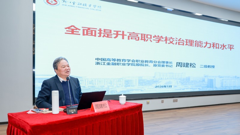 为深入学习贯彻党的二十届四中全会精神,1月4日,我校召开党委理论学习中心组学习(扩大)会,邀请中国高等教育学会职业教育分会理事长、浙江金融职业学院原院长、原党委书记周建松教授来校作专题报告。党委书记林刚主持会议,学校党委理论学习中心组成员、全体中层干部参加学习会。周建松以《全面提升高职学校治理能力和水平》为题,从全面构建高职学校内部治理体系、不断提高高职学校干部治理能力水平、二级学院建设和能力水平提升、重视学校有效治理的基础建设、高职学校文化治理五个层面系统梳理了高职学校治理能力提升的逻辑框架与实践路径。让全体干部对从内部治理体系构建的顶层设计、干部能力提升的路径方法、二级学院建设的实践策略、
