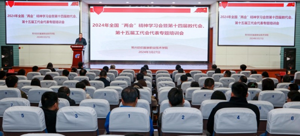 3月30日上午9:30,伴随着庄严的国歌,我校第十四届一次教职工代表大会暨第十五届一次工会会员代表大会(以下简称“两代会”)在图文报告厅隆重开幕。常州市总工会副主席徐亚明、市教育工会主席徐红兵出席大会,“两代会”全体正式代表、列席代表和特邀代表参加会议。开幕式由大会主席团执行主席洪霄主持。开幕式上,党委书记吴访升代表学校党政致开幕词。他对我校教代会和工会组织,在过去的一年参与学校民主管理、促进教育教学改革、加强学校建设、维护教职工合法权益、调动各方积极性等方面所做的工作给予肯定。表示学校党委将进一步加强对工会工作的领导,把工会工作纳入党委工作总体格局,同其他工作同研究、同部署、同落实。他希望与会代表密切结合学校实际,紧紧围绕会议主题,认真行使教职工赋予我们的权利,以饱满的工作热情、高度的政治责任感和强烈的主人翁意识履行好代表职责,并预祝大会取得圆满成功。徐亚明代表市总工会、市教育工会和在常各高校工会组织向大会的召开表示热烈的祝贺。他肯定了学校对工会工作的高度重视和支持,肯定了我校工会在团结带领全校教职工为学校各项事业高质量发展助力赋能方面发挥的重要作用,称赞了我校工会多年来取得的优异成