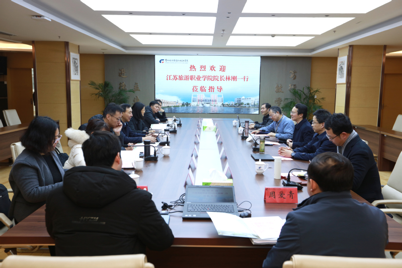 3月5日下午,江苏旅游职业学院党委副书记、院长林刚,党委委员、副院长周丽,党委委员、组织部部长高欣等一行10人来校调研交流。我校党委副书记、院长洪霄,党委副书记王顺明及相关职能部门负责人参加交流,会议由洪霄主持。洪霄对江苏旅游职业学院一行表示热烈欢迎,重点介绍了我校近年来在岗位设置与聘用、绩效考核、基本工作量认定等领域的经验做法。他指出,两校渊源深厚,期待以此次交流为契机,深化互学互鉴,共享先进经验,整合优势资源,携手推动两校事业发展再上新台阶。林刚高度肯定我校事业发展及取得的成效,简要介绍了江苏旅游职业学院在岗位设置、绩效考核等方面的实践探索。他表示,希望两校持续深化交流合作,在互学互鉴中携手共进、互促共荣,共同书写高质量发展新篇章。此次调研交流聚焦办学治校关键领域,为两校搭建了经验共享平台,双方达成深化合作、共促发展的共识,为未来协同推进教育事业进步奠定坚实基础。图:徐昱文:党政办审核:顾广涛会议现场