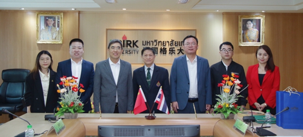 11月20日至24日,受泰国格乐大学邀请,学校党委委员、副院长张震宇,后勤保障部部长李凯赴泰国格乐大学及泰国中国国际学校进行访问交流。访问团受到了泰国格乐大学理事长王长明先生、副校长素帕教授的热情欢迎。 在走访泰国格乐大学校史馆馆、参观了解格乐大学办学成果展和尼山世界儒学中心格乐大学分中心(泰国)后,双方领导进行了深化合作交流会谈。素帕在欢迎致辞中介绍了格乐大学七十一年的办学历史、院系与专业设置、学科建设和学生培养等方面取得的成绩。张震宇介绍了我校的办学历史、办学特色、专业优势、科研成就和人才培养特色和国际化发展成果和未来构想。王长明详细介绍了格乐大学的国际化发展战略,特别是近些年来在世界大学排名、专业排名和国际合作上取得的成绩,特别强调了格乐大学与中国高校的紧密合作关系,回顾了我校与于格乐大学签约开展国际教育合作以来取得的成绩。格乐大学国际学院副院长、艺术系主任林毓芝博士详细汇报了格乐大学科研成就、国际合作方案、国际合作项目和艺术类专业发展规划。双方就两校间教学科研后勤服务合作、学生长短期交流交换、学生联合培养等项目进行了深入探讨。 访问期间,张震宇、李凯专门就学生管理、后勤服务管