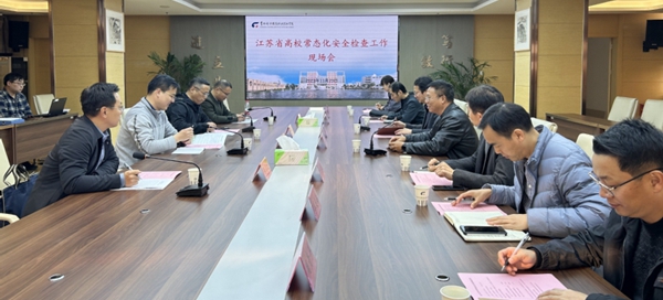 11月23日下午,江苏省高校常态化安全检查组一行来校检查指导安全工作。学校党委副书记、院长洪霄,各相关职能部门主要负责人及各二级学院分管领导参加了会议。会议由保卫处处长罗卫东主持。洪霄代表学校致欢迎辞,他指出:学校高度重视安全工作,近年来,学校着眼于安全生产、食品安全、危化品安全管理、“无诈校园”等方面的工作,并逐步建立了常态化的安全检查和管理机制,全力保障广大师生员工在校期间的生命和财产安全。学校热烈欢迎检查组来校检查指导工作,给学校现阶段的安全工作多提宝贵意见,以查促改、以查促建,以查促管,帮助学校进一步提升高质量平安校园的建设水平。检查组成员南京工业大学保卫处处长季宜敬,向与会人员分别介绍了检查组成员及本次安全检查工作的目的任务分工。罗卫东代表学校从落实安全责任、创新安全教育形式和规范实验室及危化品安全管理等10个方面向检查组做了自查工作汇报,并重点汇报了我校开展常态化安全检查工作的情况。会后,检查组一行实地检查了纺织专业实验室、危化品仓库、机电专业实训车间、学生宿舍和食堂等重点场所,听取工作人员现场汇报,并仔细查阅了管理工作台账。检查组一行对我校的安全工作予以了充分肯定,指出学