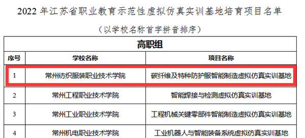 近日,江苏省教育厅公布江苏省示范性虚拟仿真实训基地培育项目名单,我校成功获批建设“碳纤维及特种防护服智能制造虚拟仿真实训基地”。江苏省示范性虚拟仿真实训基地建设是职业院校“提质培优”的重要目标和建设任务之一,学校领导高度重视,成立项目组,教务处等部门统筹协调,跨学院、跨专业精心打造建设方案、申报书,最终成功入围。学校将以江苏省示范性虚拟仿真实训基地建设为契机,遵循“以实带虚、以虚助实、虚实结合”原则,有效整合学校资源,强化虚拟仿真资源建设,促进虚拟仿真技术与教育教学深度融合,提升虚拟仿真技术服务课堂教学、创新创业、技术服务、技能竞赛等的能力和水平,为学校双高校建设添砖加瓦,推动学校高质量发展。图/文:教务处审核:夏冬