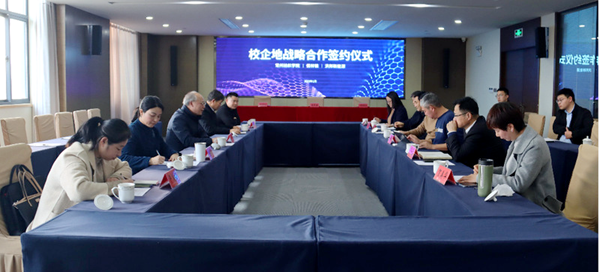 1月8日下午,校党委书记吴访升、校党委委员、副校长张文明、科技处、校企合作处处长李爱红、机电学院副院长刘宏泉、校企合作处产教科科长严美娴一行五人赴金坛区洪邦新能源产业园,与金坛区儒林镇人民政府、常州洪邦新能源技术有限公司签订校地企全面战略合作协议。金坛区儒林镇党委书记贺国洪、党委副书记、镇长于立俊、副镇长孙丽萍、金坛区文旅局局长尹韧、发展顾问贺美华、洪邦新能源董事长徐洪军、园区负责人刘昭君及相关政府部门领导及企业负责人参加会议。会议由孙丽萍主持。会议上,徐洪军首先就产业园合作建设项目进行介绍,他表示希望将这个新能源产业园打造成世界知名产业集群。通过前期到常州纺院走访调研,对学校人才培养、专业建设有了深度了解,对学校人才培养教学成果表示肯定。徐洪军希望学校与企业联合,共同创新人才培养。通过洪邦海外销售资源,把学校师生发明、学生独特的IP售往海外,打造中国品牌。吴访升向关心和支持我校发展的金坛儒林镇领导和企业领导表示感谢。他说,常洲纺院的办学特色和儒林镇的产业资源高度融合,校地企全面战略合作协议的签署,揭开了三方合作的新篇章。学校将以此契机,抢抓合作机遇,进一步加强与儒林镇、洪邦新能源共同
