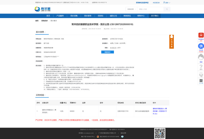 采购编号:信息服务中心-2025-10信息服务中心对樱花路创业街辅导员集中办公场地修缮弱电项目采用询价方式进行采购,现请符合条件的供应商参加投标,有关事项公告如下:一、采购内容辅导员集中搬迁场所修缮弱电项目,详见询价单及弱电施工图。本项目为总价包干,设定最高限价为为19220元,(大写)壹万玖仟贰佰贰拾元整。二、成交原则在符合采购需求、质量和服务相等且报价未超过采购预算的前提下,以提出最低报价的响应单位为成交供应商。若最低报价相同,则依次按质保期内供应商夜间接到校方报修电话后到达现场时间短优先、承诺项目交付时间短优先的顺序排列选择成交供应商。三、对供应商的基本要求:1、必须符合《政府采购法》第二十二条的相关规定;2、具有独立承担民事责任的能力;3、具有良好的商业信誉和健全的财务会计制度;4、具有履行合同所必需的设备和专业技术能力;5、有依法缴纳税收和社会保障资金的良好记录;6、单位负责人为同一人或者存在直接控股、管理关系的不同供应商,不得参加同一合同项下的采购活动;7、参加采购活动前三年内,在经营活动中无重大违法记录或无不良行为记录(如该记录对禁止参与招投标活动有明确规定的,从其规定,