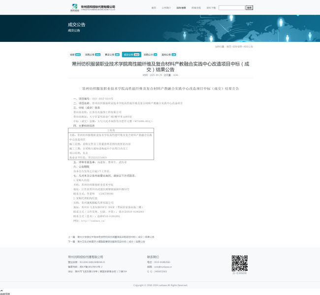 创意设计学院对数字化设计与样品开发实训室-疗愈型VR绘画虚拟操作系统项目采用询价方式进行采购,现将成交结果公告如下:一、采购项目名称及编号:项目名称:数字化设计与样品开发实训室-疗愈型VR绘画虚拟操作系统项目项目编号:创意设计学院-2025-10二、采购公告媒体及日期:2025年9月10日起在常州纺织服装职业技术学院网站上发布采购公告。三、评审信息:评审日期:2025年9月18日17:00;评审地点:八号楼8230办公室;评审委员会名单:王勇、史京军、裴浩。四、成交信息:成交单位名称:福州鼎霖智能科技有限公司;成交金额:24500元(大写:贰万肆仟伍佰元整)五、本次采购联系事项:联系人及联系电话:董老师13861184158邮政编码:213164联系地址:江苏省常州市武进区湖塘镇滆湖中路53号网址:http://www.cztgi.edu.cn六、成交结果公告期限:本次成交结果公告期限为1个工作日。创意设计学院2025年9月22日